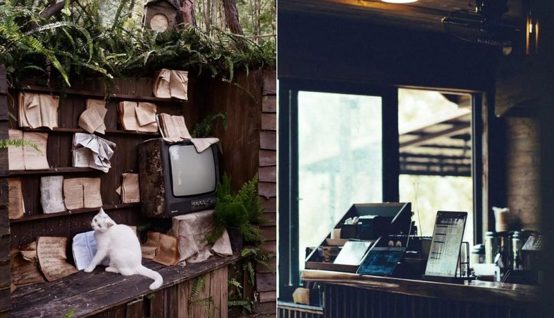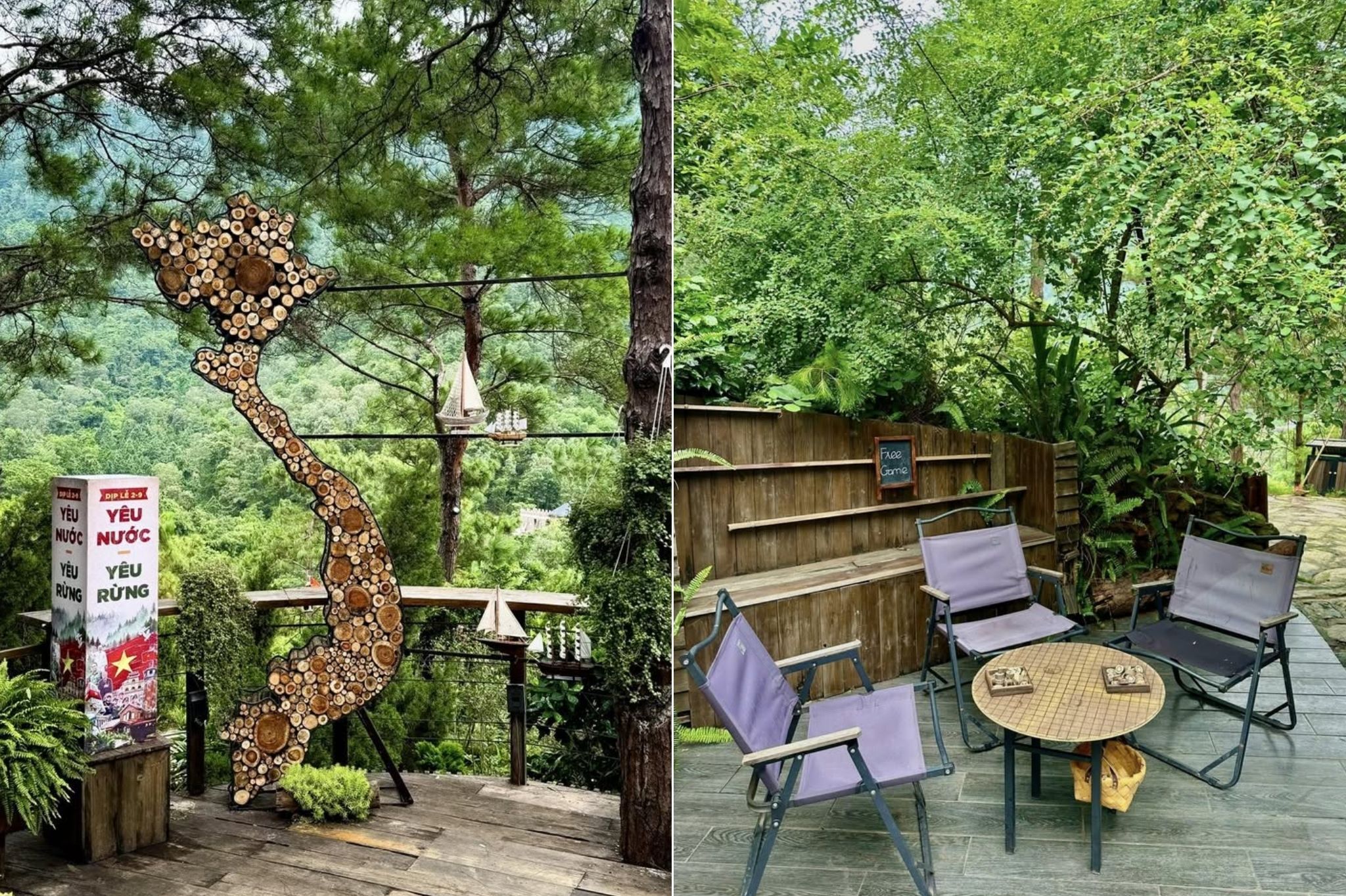 Thiết kế: Quán được xây dựng hoàn toàn bằng gỗ với tông màu trầm, tạo cảm giác ấm cúng và gần gũi với thiên nhiên.