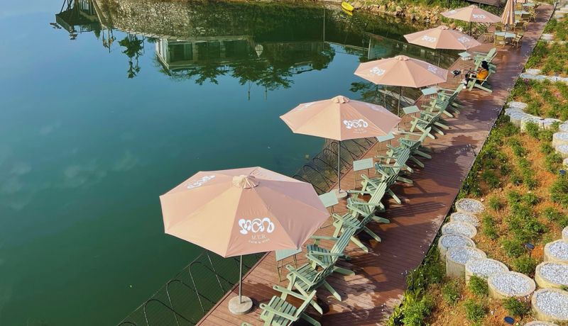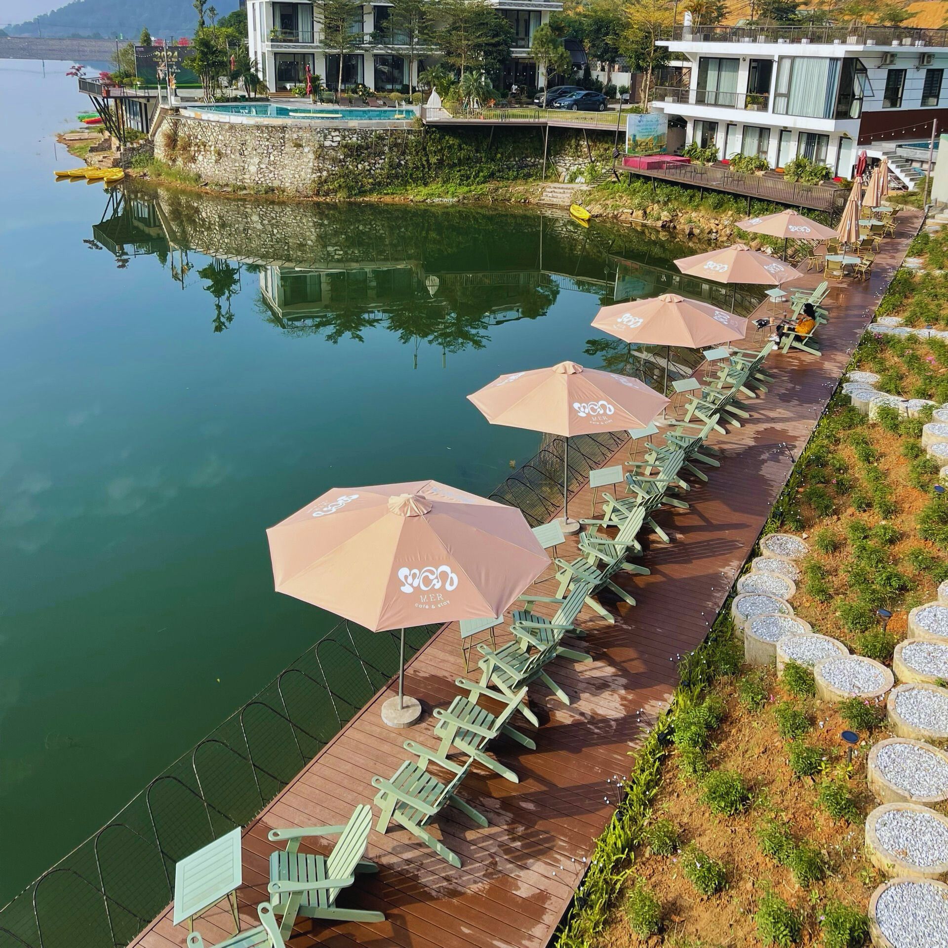 Mer Café & Stay được thiết kế hài hòa với thiên nhiên, mang đến không gian mở, thoáng đãng và yên bình. Nằm gần hồ Đồng Đò và rừng thông, nơi đây sở hữu tầm nhìn tuyệt đẹp, vừa giúp thư giãn vừa tận hưởng không khí trong lành, xanh mát.