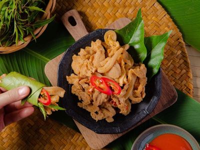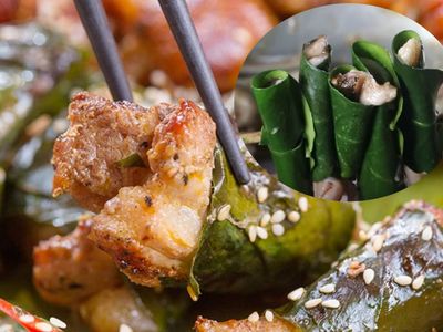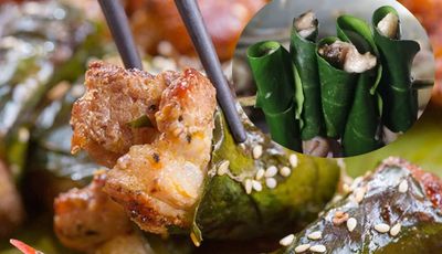 🌿 Chả cuốn lá bưởi – Món ăn đặc sản của người Mường với thịt băm quấn lá bưởi, mang hương vị đắng nhẹ - cay thơm - ngọt ngậy, giúp tiêu hóa tốt và ổn định huyết áp.