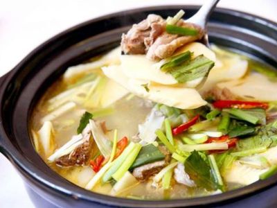 🐔 Gà nấu măng chua & hạt dổi – Gà mềm, béo quyện cùng măng chua trắng giòn và hạt dổi thơm nồng, tạo nên hương vị khó quên đặc trưng núi rừng Tây Bắc.