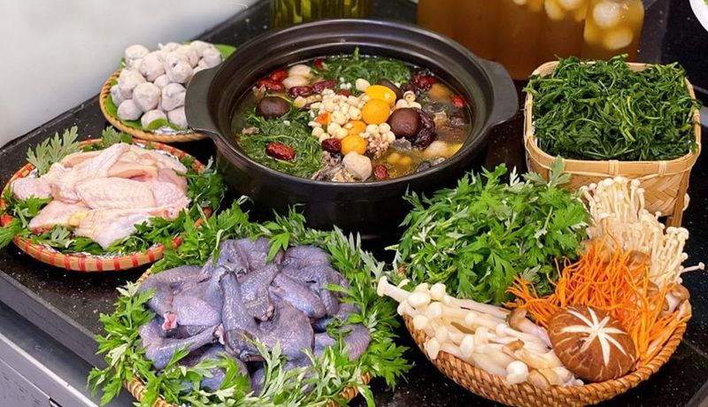 🥘 Lẩu Di sản – Món lẩu độc đáo với hơn 10 loại rau rừng như: ngải cứu, tam giác mạch, rau dớn, tàu bay, xuyến chi, hoa chuối, đinh lăng, ngọn ban non… Tất cả được hái từ tự nhiên, vừa thơm ngon vừa bổ dưỡng.