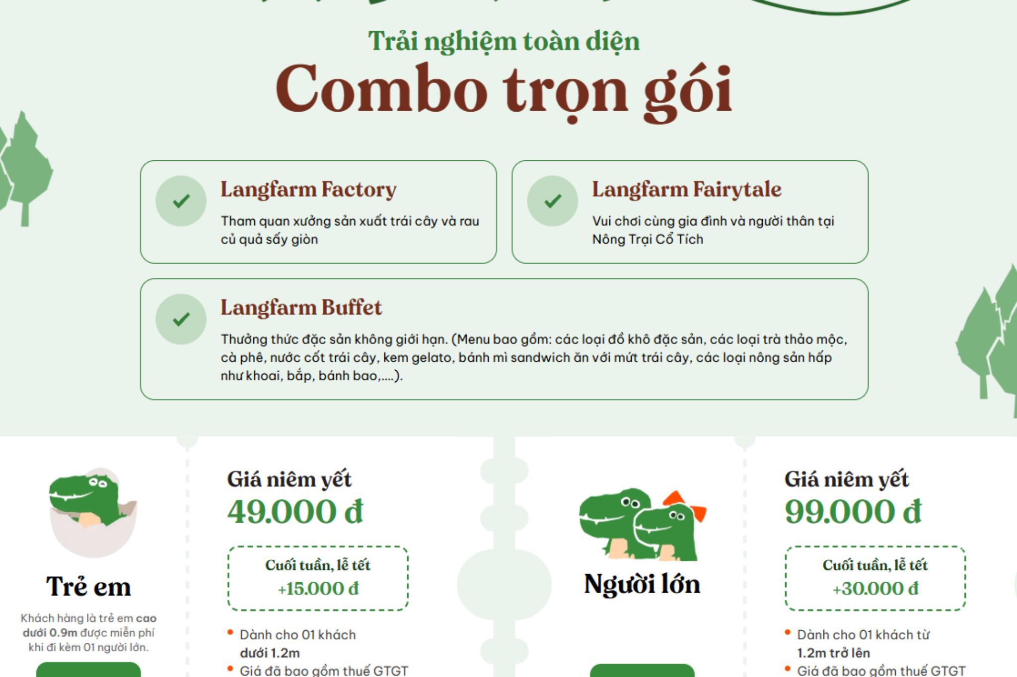 Giá vé: Người lớn 99.000đ | Trẻ em 49.000đ | Trẻ dưới 0,9m: Miễn phí