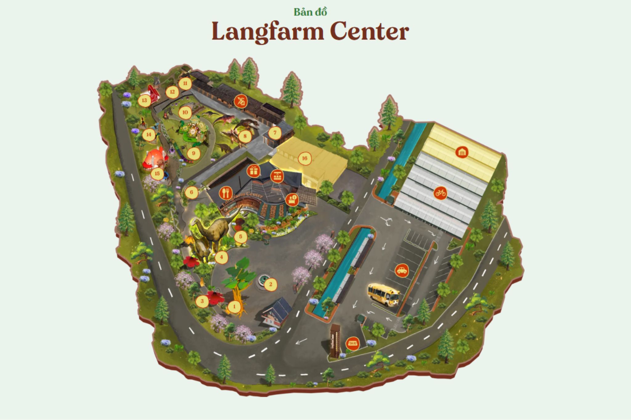 Để ghé thăm Langfarm Center – Nông Trại Cổ Tích, nơi tái hiện không gian huyền ảo giữa lòng Đà Lạt với sắc màu của bốn mùa và câu chuyện làng quê mộng mơ, bạn có thể đi theo lộ trình sau: