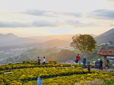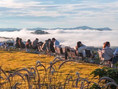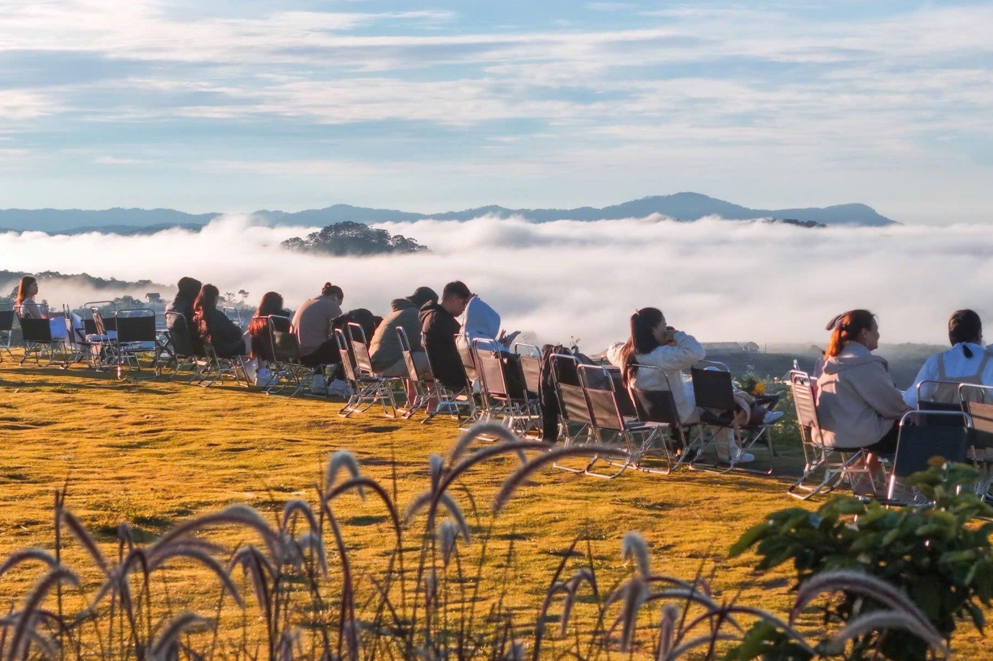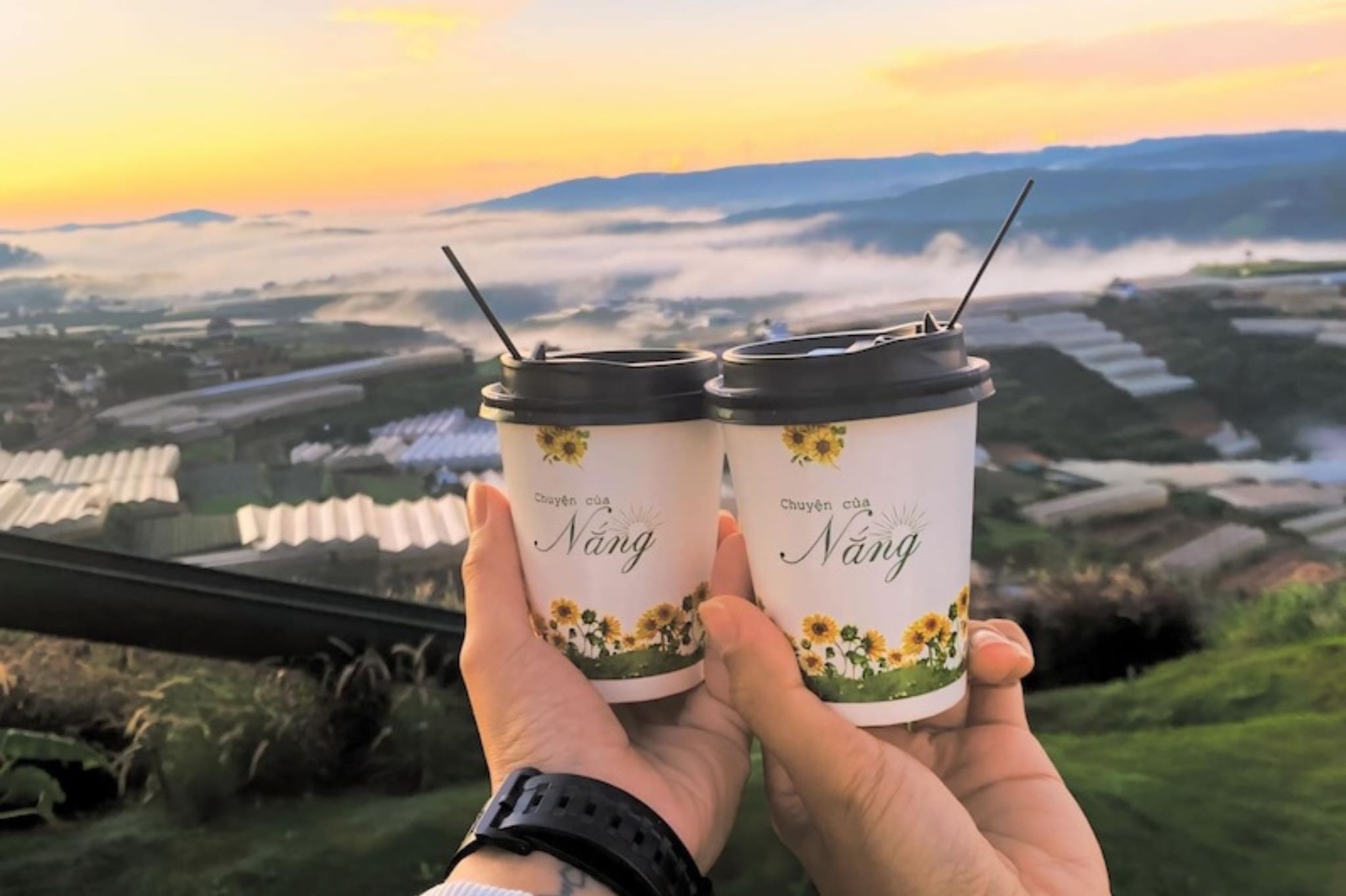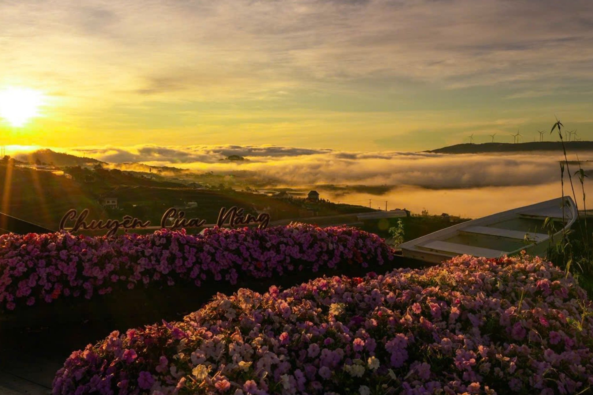 Khung cảnh tại cafe Chuyện Của Nắng như một bức tranh thơ mộng tinh tế, nơi sắc vàng của nắng và màu xanh của cỏ cây hòa quyện vào không khí se lạnh đặc trưng của Đà Lạt. Đón bình minh tại đây là trải nghiệm tuyệt vời khi từng tia nắng đầu ngày nhẹ nhàng len qua những cánh đồng cỏ lau lững lờ trong gió, mở ra một ngày mới đầy hy vọng. Hoàng hôn buông xuống, cả quán như khoác lên mình chiếc áo rực rỡ và lung linh, tạo nên khoảnh khắc lãng mạn đến nao lòng. Mùa thu đến, không gian thêm phần huyền diệu với biển mây bồng bềnh, khiến ai cũng muốn dừng lại mãi để săn mây và tận hưởng vẻ đẹp ngàn lần say lòng tại nơi này.