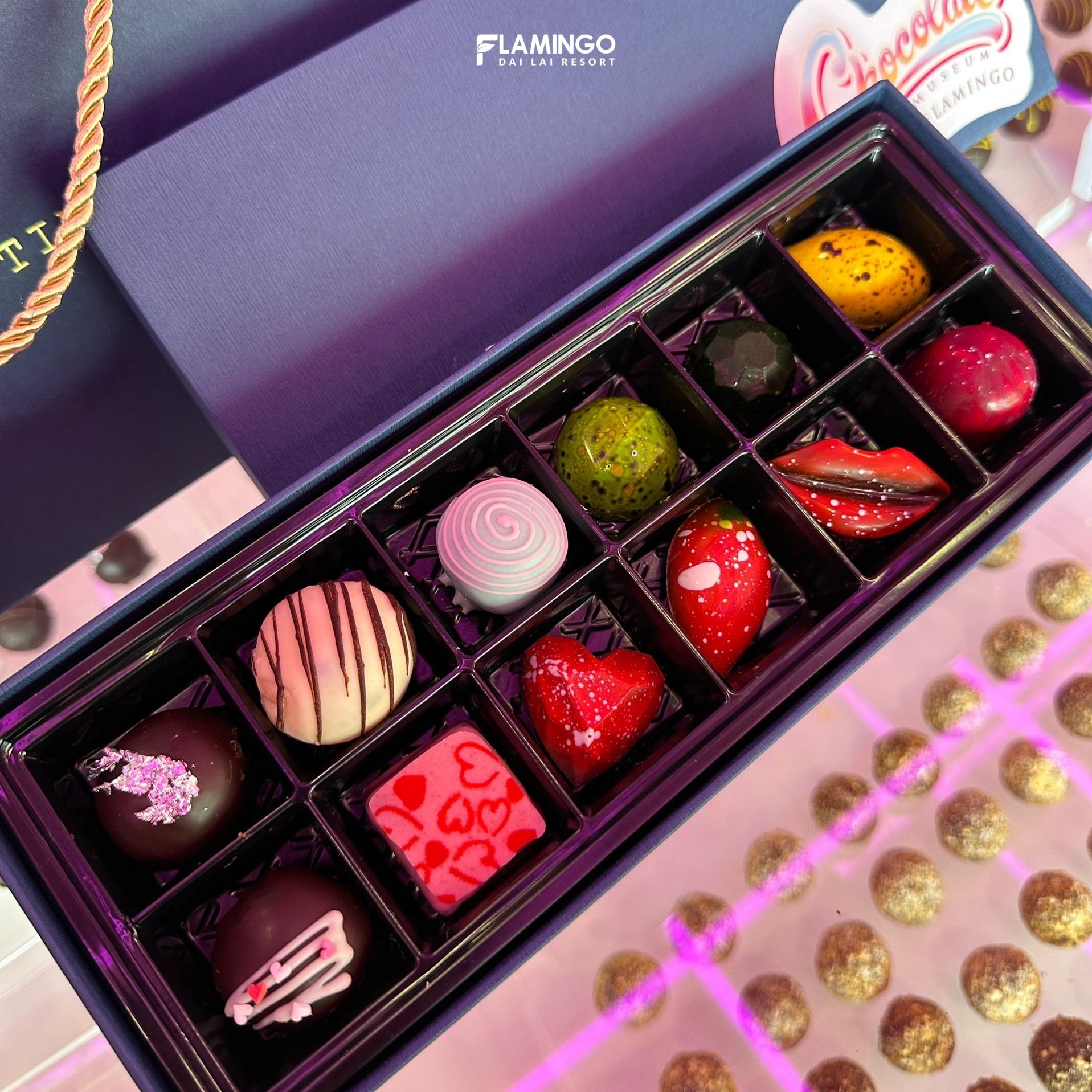✨ Bước vào Bảo tàng Chocolate Flamingo Đại Lải, bạn sẽ lạc vào không gian ngọt ngào đầy màu sắc, khám phá lịch sử, quy trình chế tạo và những loại chocolate nổi tiếng khắp thế giới, đồng thời tự tay trải nghiệm làm chocolate dưới sự hướng dẫn của các nghệ nhân để mang về những món quà độc đáo.