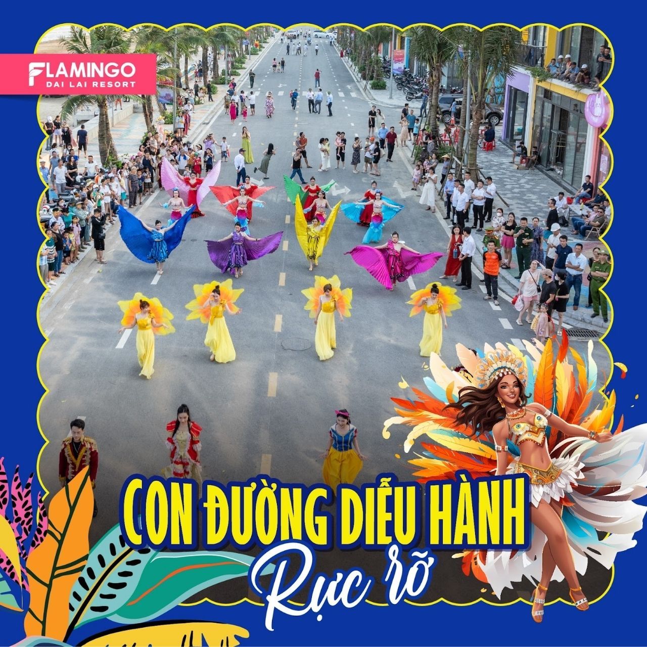 Sau khi vào cổng chính, bạn đi thẳng theo đường trục chính hướng về trung tâm khu Flamingo.