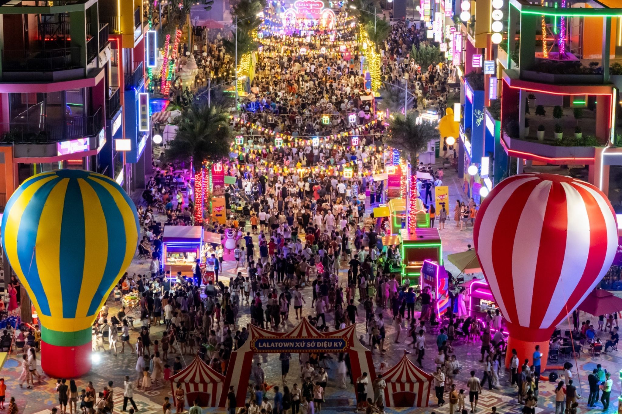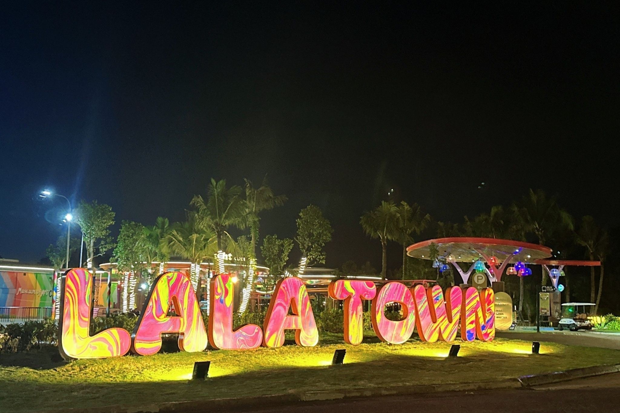 Quan sát bên tay trái, sau vài phút di chuyển bạn sẽ thấy khu Lalatown – dãy phố thương mại sầm uất với nhiều cửa hàng, quán café, nhà hàng và khu check-in.