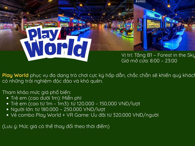 ✨ Dù bạn là tín đồ công nghệ, nhóm bạn trẻ năng động hay gia đình có trẻ nhỏ, Play World luôn có “góc vui chơi riêng” để mỗi phút giây tại Flamingo thêm trọn vẹn.