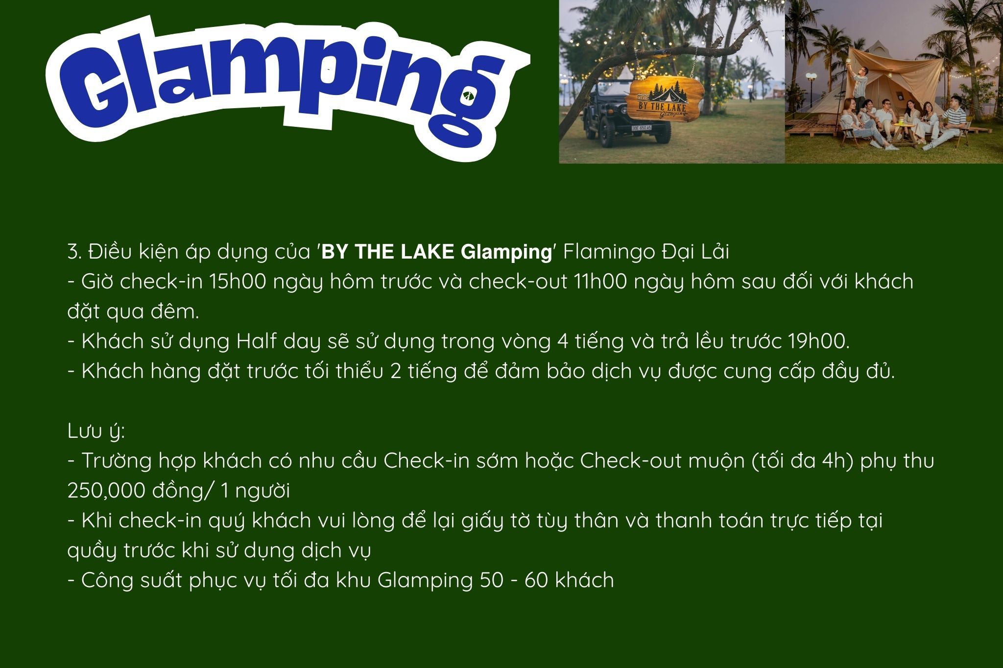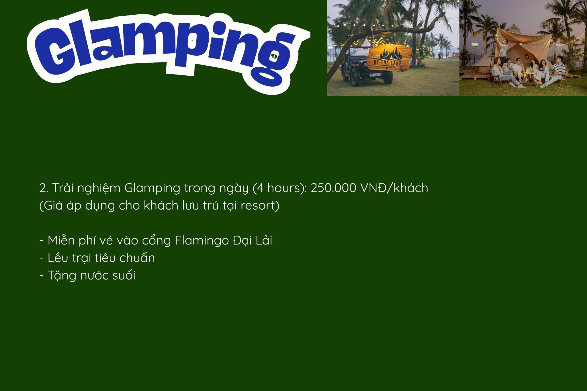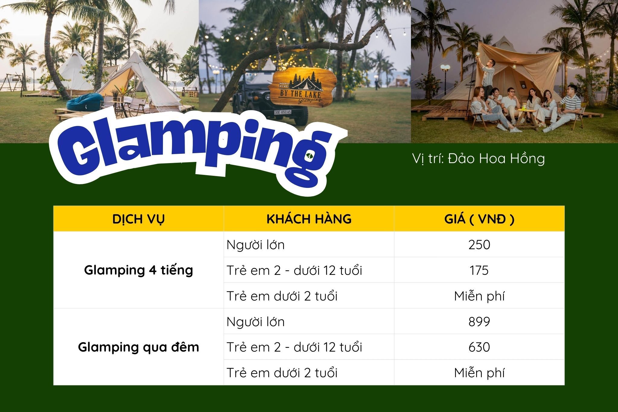 🏕️ Glamping trong ngày (4 tiếng): 250.000 VNĐ/người lớn, 175.000 VNĐ/trẻ em từ 2 đến dưới 12 tuổi.