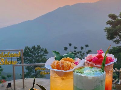 Ngoài những góc sống ảo đẹp thì ở đây còn có một quán cà phê nhỏ, được đặt ở vị trí nhìn trực diện ra thung lũng, không gian thoáng mát và rất "chill" để thưởng thức cà phê kết hợp với ngắm phong cảnh. Ngồi ở đây tán chuyện cùng bạn bè, ngắm sương mù, mây trắng cũng rất thi vị.
