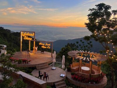 LalaLand Vĩnh Phúc cũng là địa điểm check in ngắm hoàng hôn cực đẹp tại thị trấn Tam Đảo. Nơi du khách có thể chứng kiến khung cảnh mặt trời dần khuất sau dãy núi hùng vĩ, những mảng màu rực rỡ loang lổ như tô vẽ trên nền trời xanh như nhuộm vàng cả núi rừng. Tất cả mang đến cho bạn một khung cảnh siêu đẹp nhưng cũng không kém phần huyền bí và quyến rũ.
