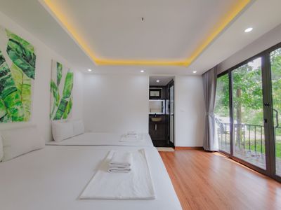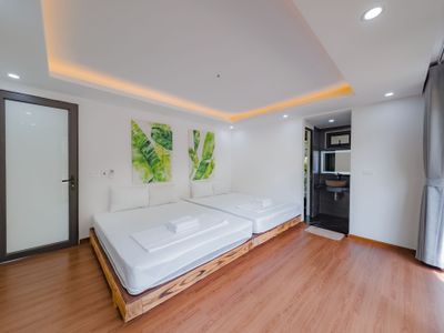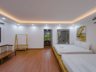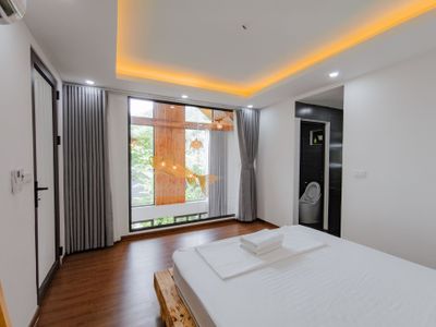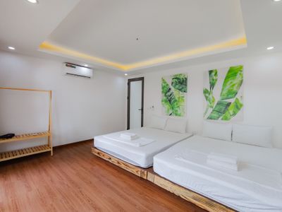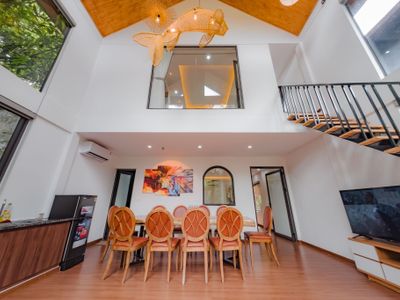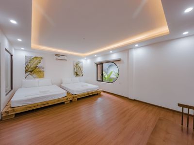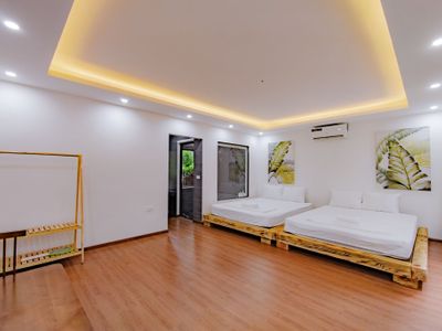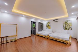 🌱 Sức chứa: 3 phòng ngủ với sức lưu trú tiêu chuẩn cho 10 người lớn và 3 trẻ em, hỗ trợ kê thêm đệm (có phụ phí) với đoàn lớn hơn.