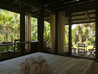 🍓 Deluxe Twin Room với view hướng núi và rừng cọ xanh mát, không gian yên tĩnh và thanh bình 🌿