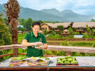 150k/ khách: Làm bánh, Đan quạt, Nhuộm, Dệt vải ...