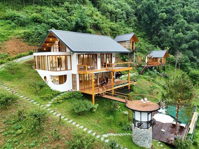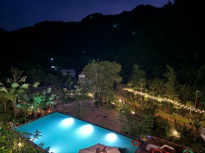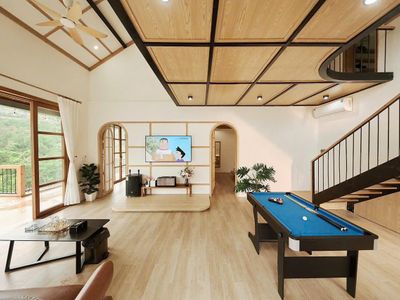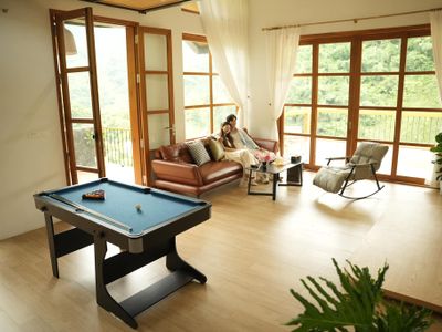 màn cỡ lớn 60 inch, giải trí Bi-a trong phòng mát lạnh 🥰có ban công và giường lưới view núi chill chill
