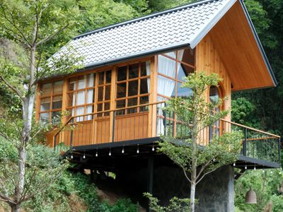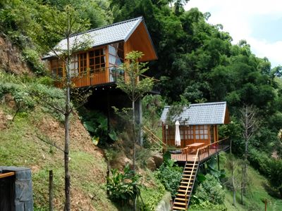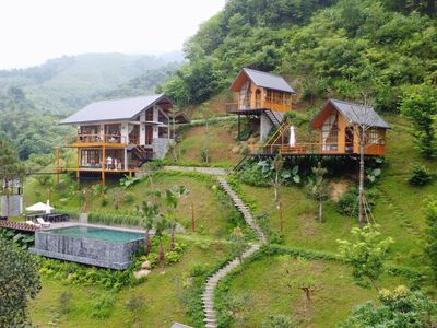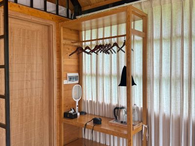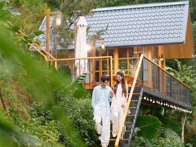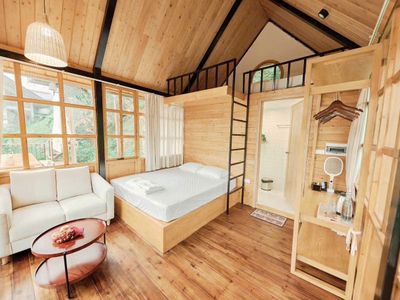 Có 2 Bugalow bên cạnh nhà chính mỗi bungalow có 1 giường 1m8x2m và gác xếp 1 giường 1,2x2m trên gác lửng, có ban công thoáng mát