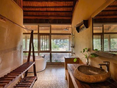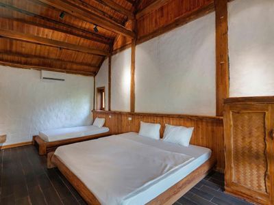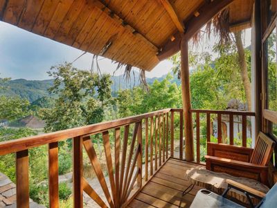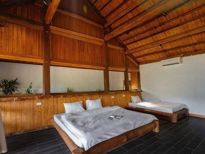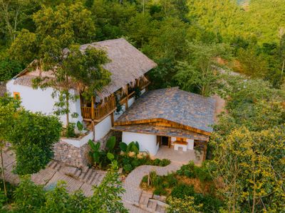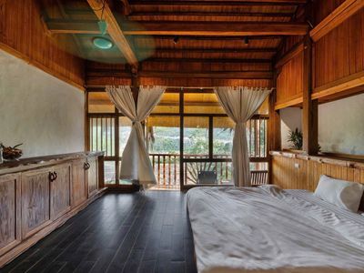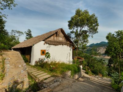 ⛺ Nhà Chiềng được thiết kế ấm cúng, view hồ Hòa Bình trong xanh, những ngọn đồi trập trùng và cả bầu trời rộng mở phía xa xa.
