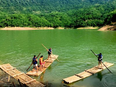 Bè đi ra giữa hồ