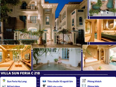 Villa C2.18 Sun Feria 🌊 diện tích 250m², hồ bơi đôi độc đáo, phòng khách rộng, karaoke – BBQ – bếp đầy đủ tiện nghi, vị trí trung tâm gần biển & SunWorld, phù hợp nghỉ dưỡng gia đình & nhóm bạn.